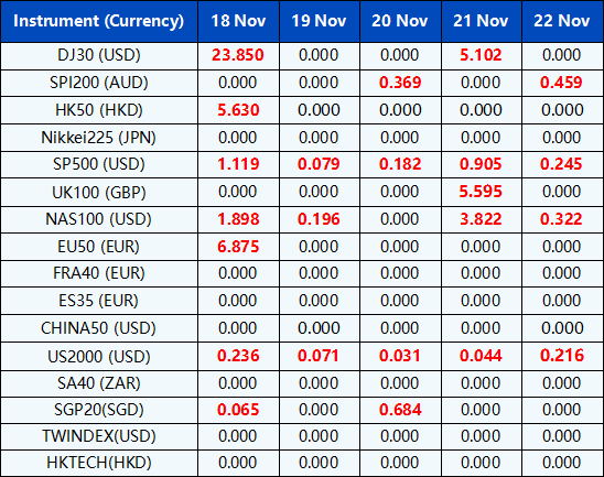 Please be advised that the dividends of the following index CFDs will be adjusted by upcoming ex-dividend dates. The comment for trading index CFDs will be in the following format “Div&<Product Name>&<Net Volume>” which show in the balance after the close of the day before the dividend payment date.