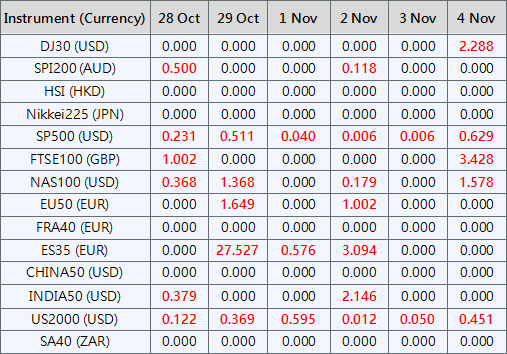 Please note that the above data are subject to changes. Please refer to MT4/MT5 for details.
