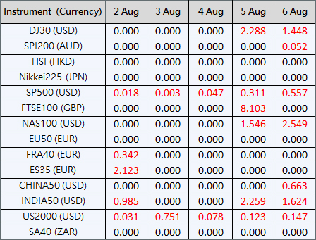 Please note that the above data are subject to changes. Please refer to MT4/MT5 for details.
