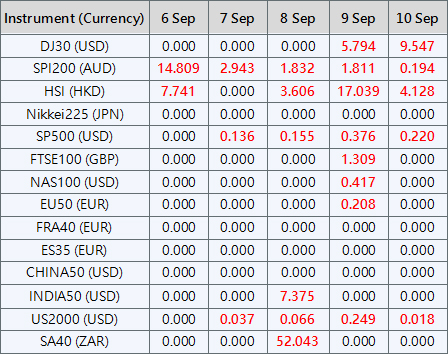 Please be advised that the dividends of the following index CFDs will be adjusted by upcoming ex-dividend dates. The comment for trading index CFDs will be in the following format “Div&<Product Name>&<Net Volume>” which show in the balance after the close of the day before the dividend payment date.