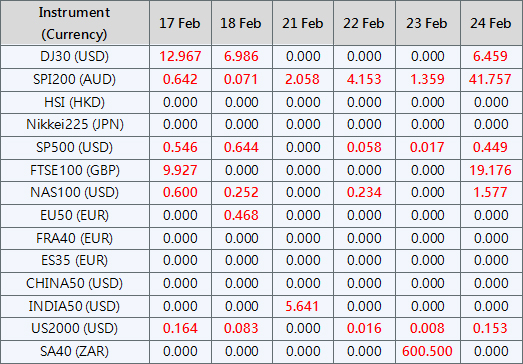 Please be advised that the dividends of the following index CFDs will be adjusted by upcoming ex-dividend dates. The comment for trading index CFDs will be in the following format “Div&<Product Name>&<Net Volume>” which show in the balance after the close of the day before the dividend payment date.