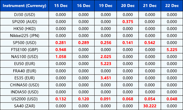 Please be advised that the dividends of the following index CFDs will be adjusted by upcoming ex-dividend dates. The comment for trading index CFDs will be in the following format “Div&<Product Name>&<Net Volume>” which show in the balance after the close of the day before the dividend payment date.
